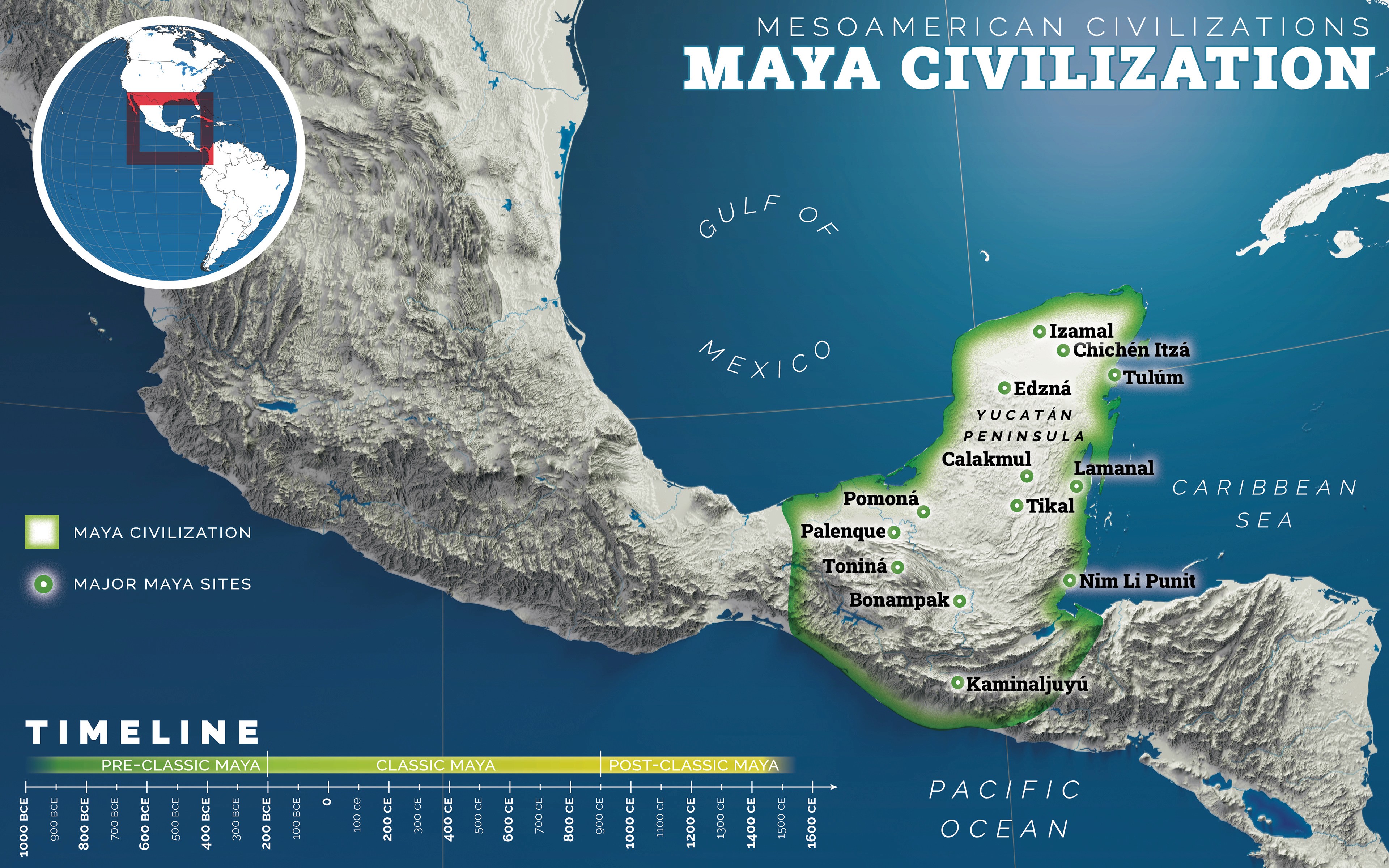 Mesoamerican Cultures Map and Timelines