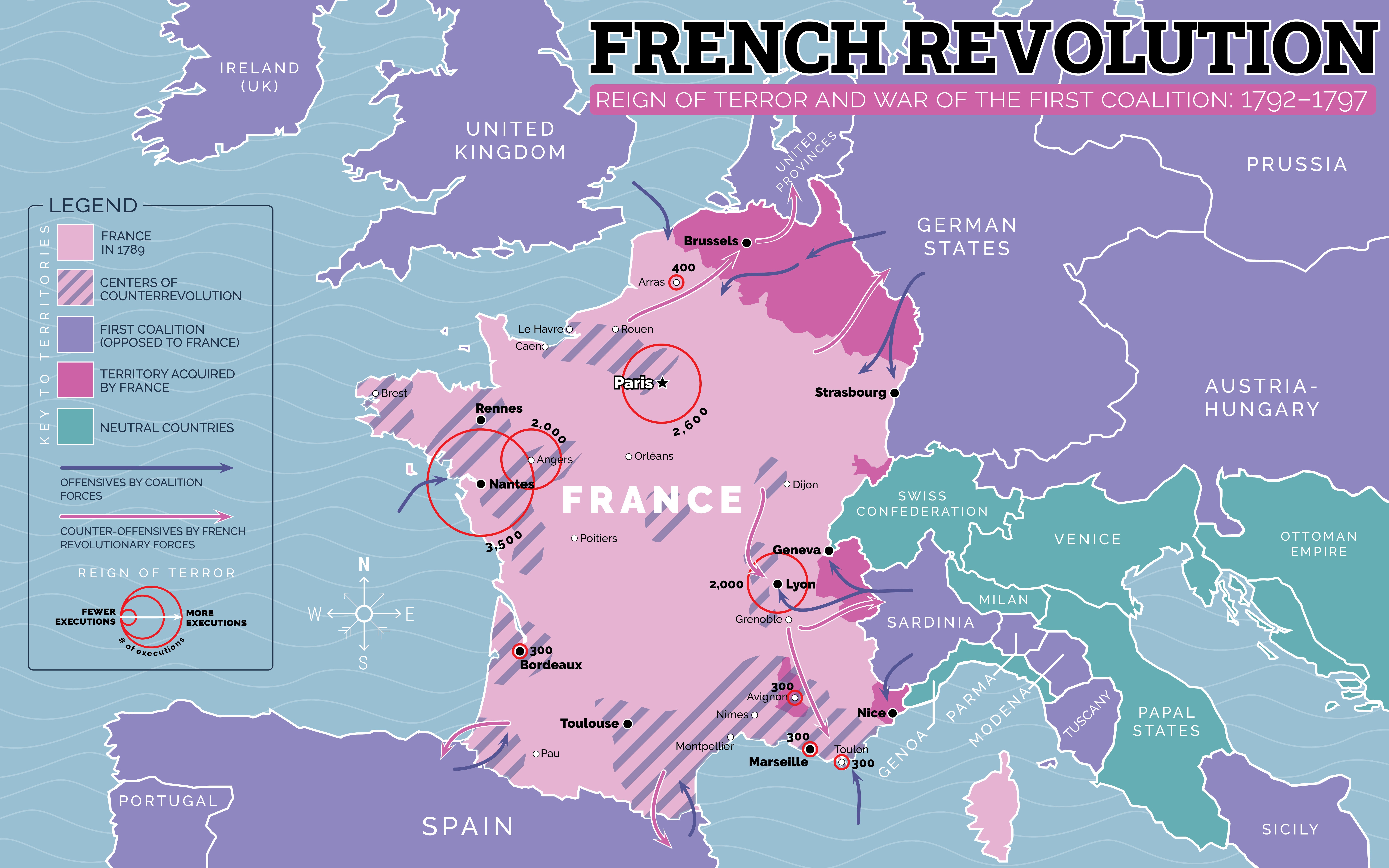 These infographics were all used in the Story of America project, a US history platform being rolled out right now in middle and high schools nationwide (also adopted for use statewide in three states and counting as part of their statewide US history curricula), and for which I was the lead educational map and infographics designer. Many of these were ideas I pitched and came up with on my own, based on the needs for each unit. These represent just a small snapshot of the hundreds of maps and graphics I did over a year-and-a-half-long period working on this project.